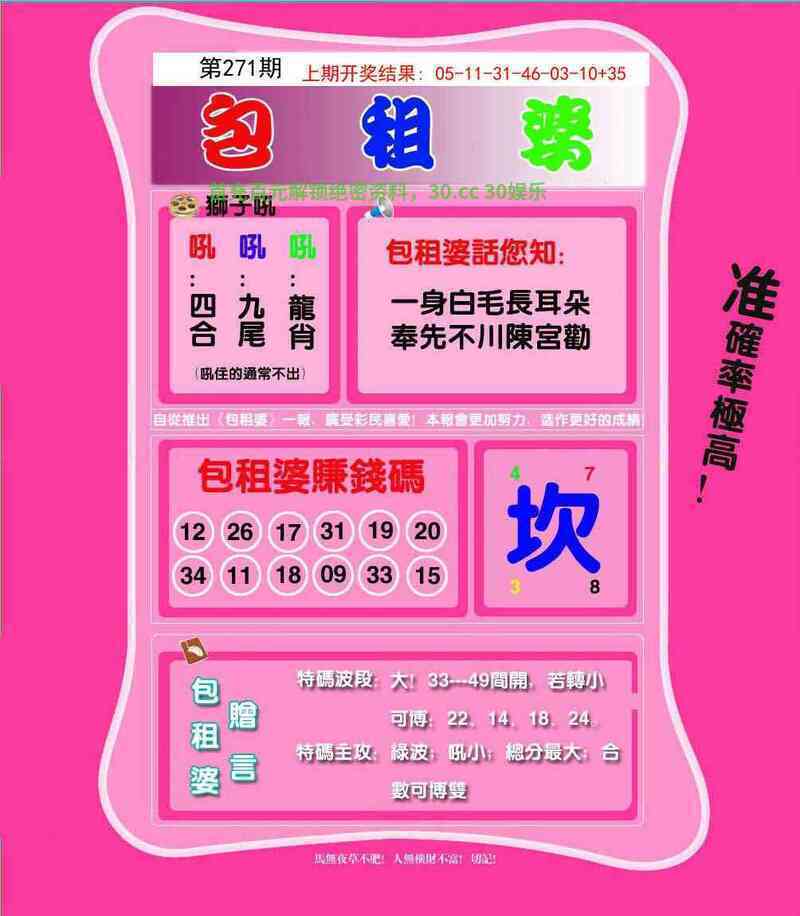 271期:【六肖12码】开:鼠06准